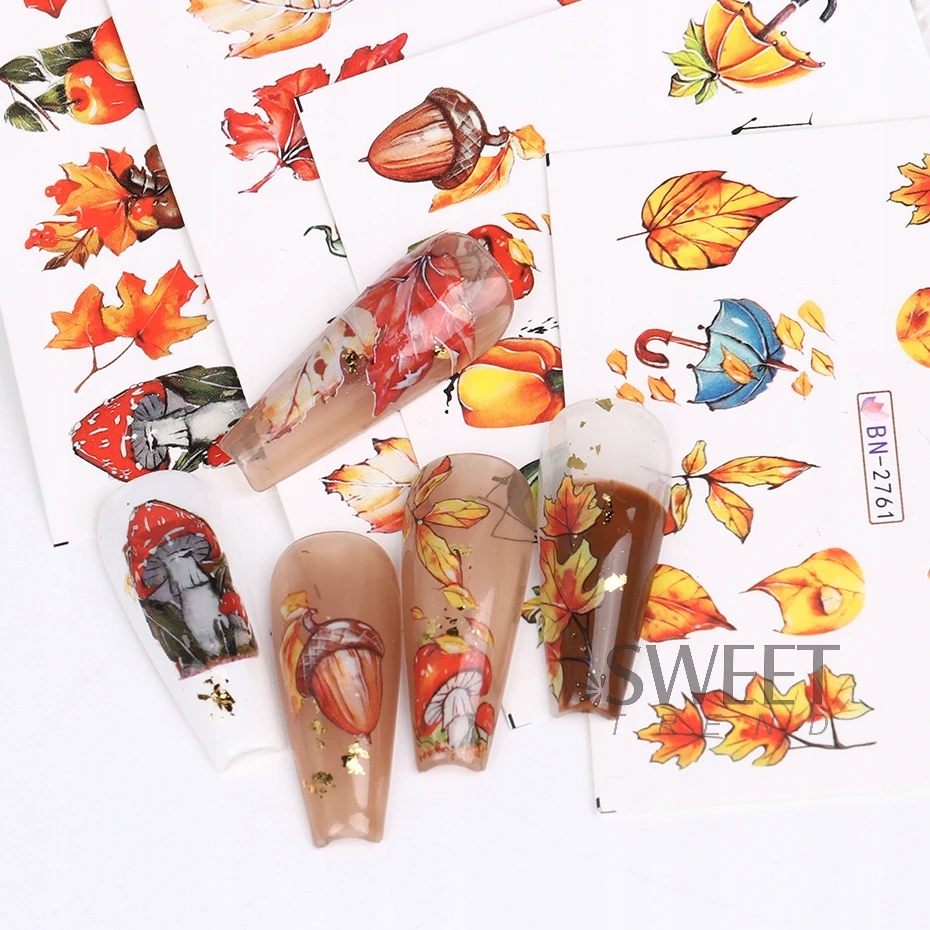 ВОДНІ НАЛІЙКИ для декору нігтів, аркуш 12 візерунків, осіннє листя