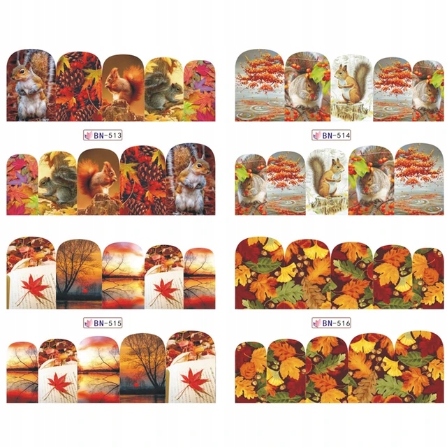 ВОДНІ НАЛІЙКИ для декору нігтів, лист 12, осіннє листя білки