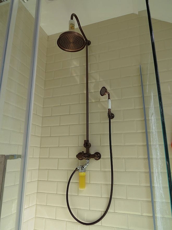 Этот продукт представляет собой комбинацию увлажняющего средства и витамина C. Он очень эффективен при удалении остатков хлора и хлорамина из водопроводной воды. Витамин С обладает антиоксидантным эффектом и, следовательно, предотвращает многие кожные заболевания, предотвращает сушку и морщины. Кроме того, это предотвращает эффекты старения, осветляет кожу и заставляет ее выглядеть молодым.