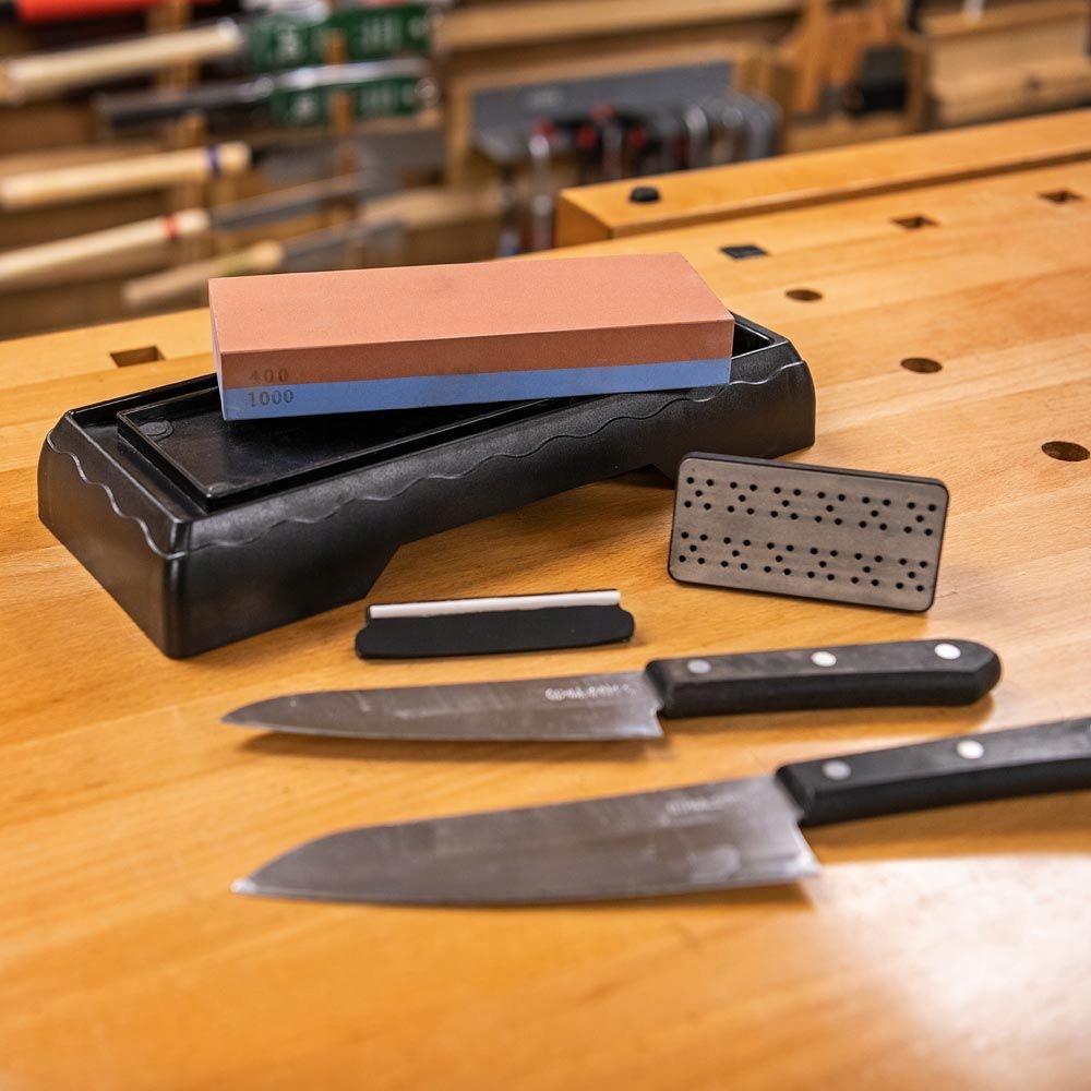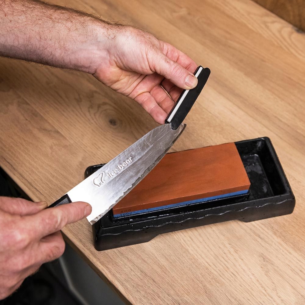 Набор для заточки ножей с водяным камнем 400/1000, направляющей и алмазным выравнивающим камнем.