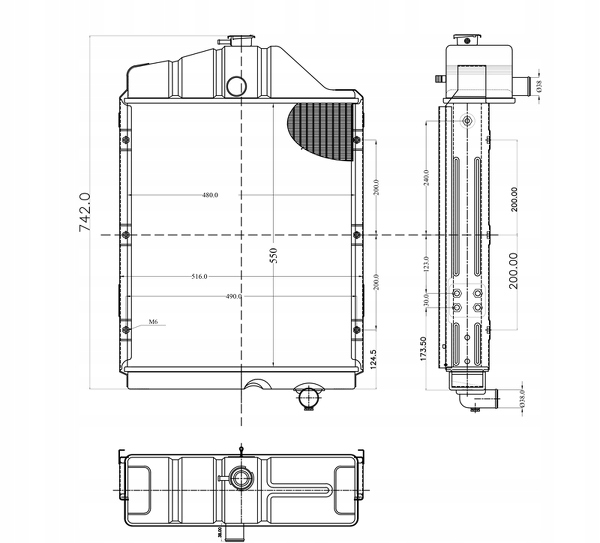 4-рядный медный водяной радиатор, боковой монтаж для 4-цилиндрового двигателя Ursus, U-912/914 84613911 Radiatore