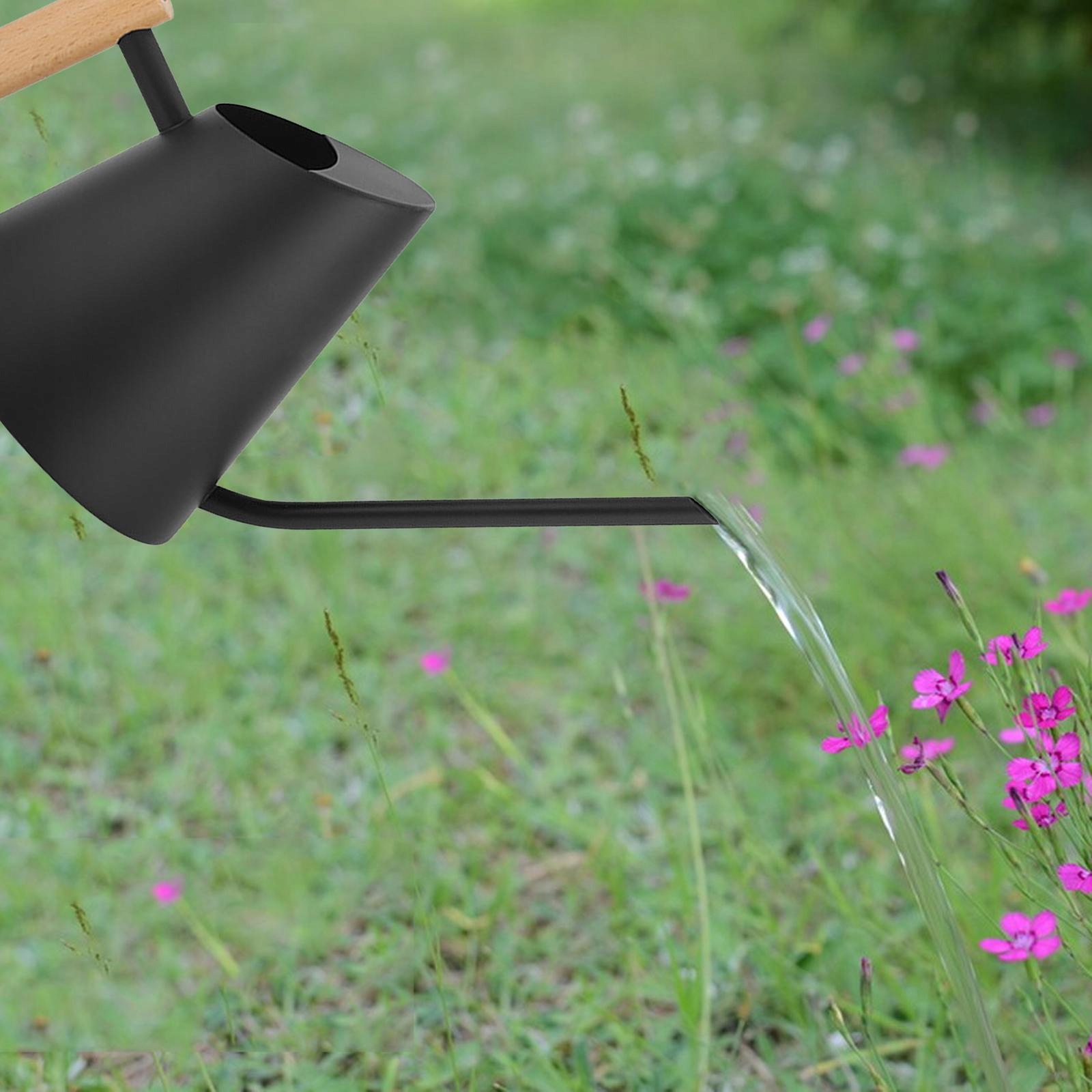 Деревянная ручка с из нержавеющей стали 900 мл для полива цветов в черном цвете