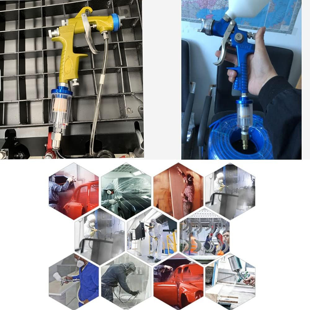 ⭐Работа краскопульта: устанавливается на краскопульт или трубопровод сжатого воздуха, фильтрует влагу и загрязнения, предотвращая загрязнение краски, делая окрашенную поверхность более гладкой и однородной. Подходит для таких применений, как покраска автомобилей, окраска мебели распылением и окраска поделок;