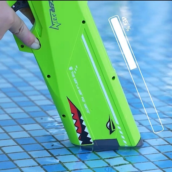 Благодаря секции запечатанной мощности, этот водный пистолет позволяет вам погрузиться в воду. Такая функциональность позволяет прямой воде выходить прямо из бассейна, что устраняет необходимость прерывать веселье, чтобы дополнить резервуар. Это уникальное решение гарантирует более длинную и более приятную активность, обеспечивая неограниченную доступность воды во время использования пистолета