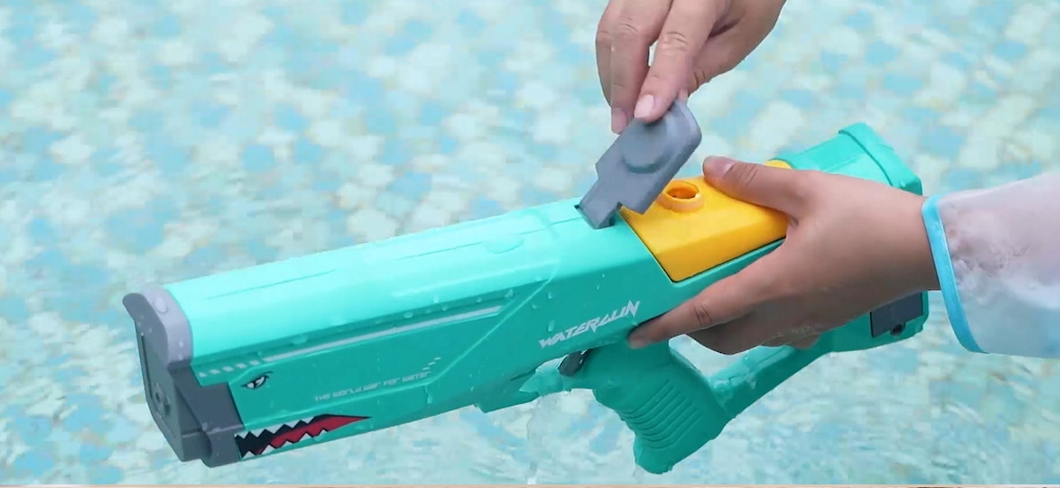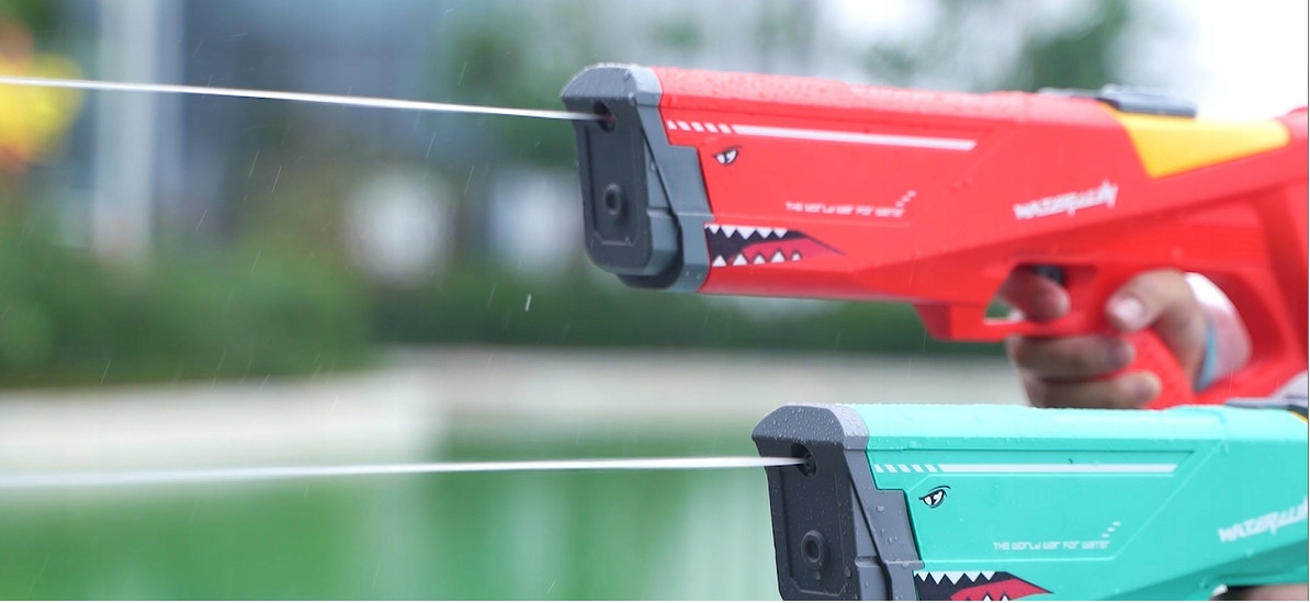 Автоматический водяной пистолет с большой емкостью бака и большой дальностью стрельбы водометом.
