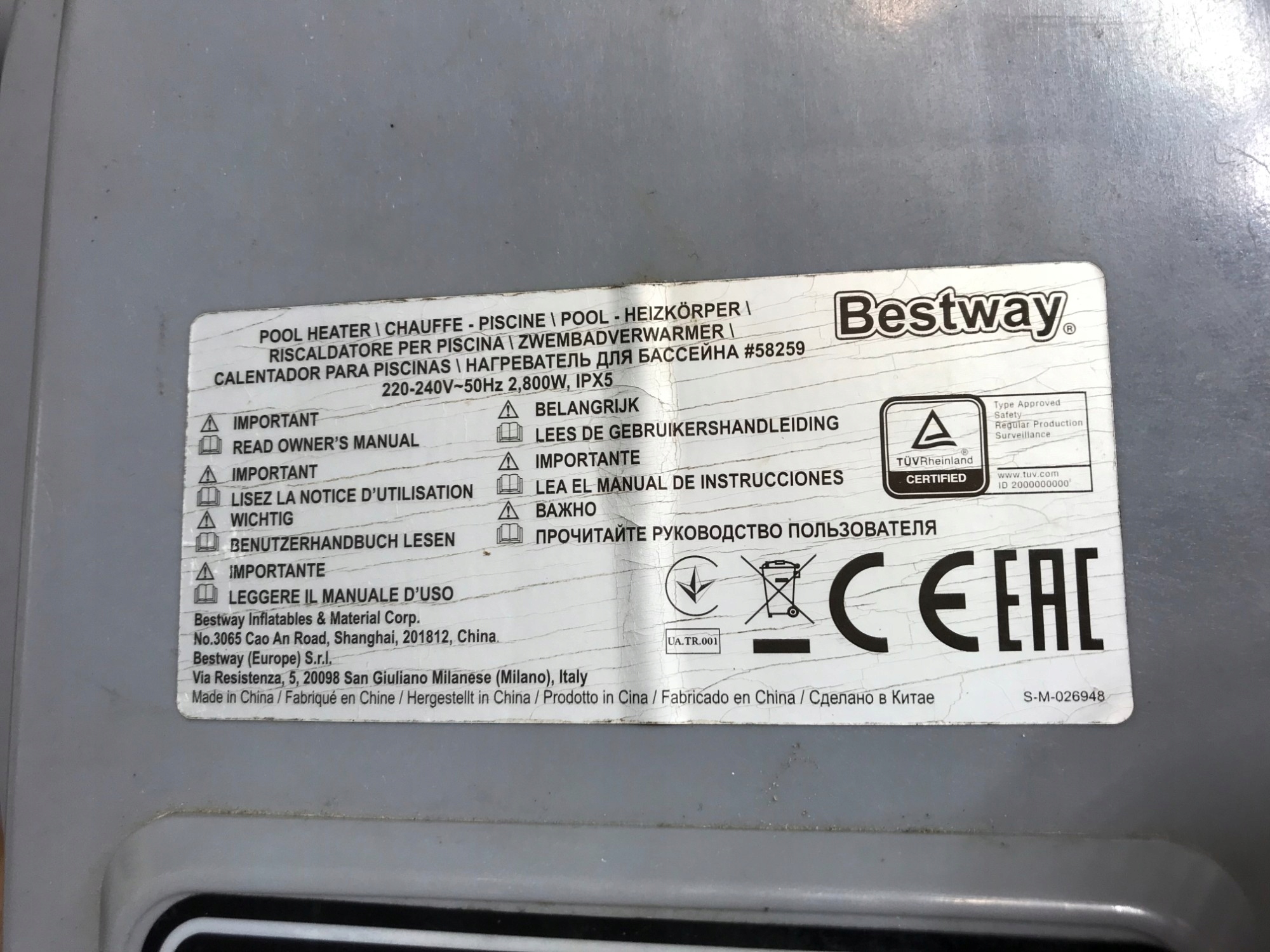 Просматривая «Водонагреватель для Bestway 58259», вы можете быть уверены, что данный товар из каталога «[rubrica_name]» будет доставлен из Польши и проверен на целостность. В цене товара, указанной на сайте, учтена доставка из Польши. Внимание!!! Товары для Евросоюза, согласно законодательству стран Евросоюза, могут отличаться упаковкой или наполнением.