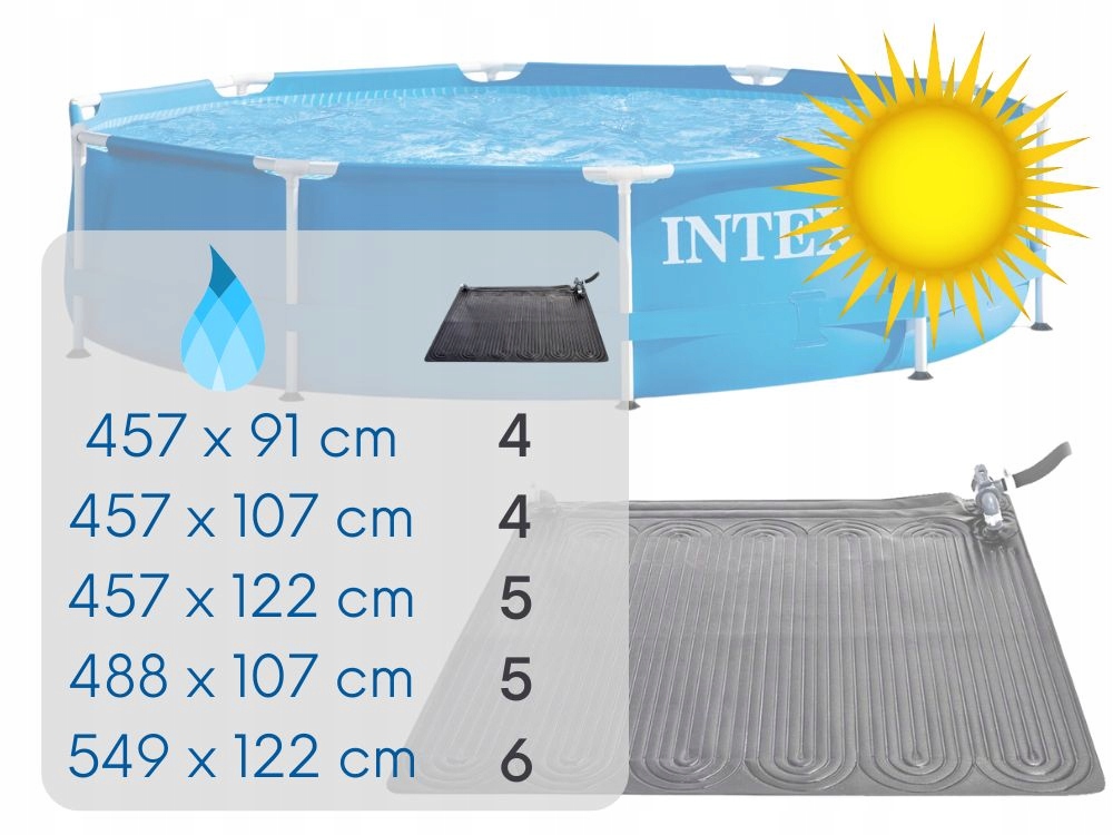 Коврик повышает температуру на 3-5 градусов Цельсия в зависимости от погодных условий. Он совместим со всеми насосами Intex и Bestway с выходным отверстием для воды 32 мм и 38 мм. Он изготовлен из высококачественного материала, обеспечивающего отличную устойчивость к погодным условиям.