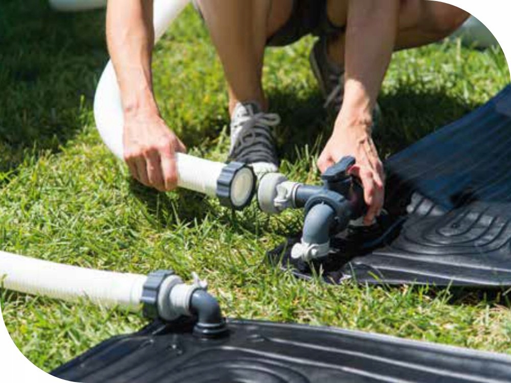 Коврик с солнечным водонагревателем избавит от проблемы с холодной водой во время купания. Он экономичен , прост в использовании и занимает очень мало места. Панель использует солнечную энергию — просто положите коврик на плоскую поверхность и подключите панель к водяному насосу или контуру песочного фильтра. Солнечные лучи нагревают воду, протекающую через панель. Нагретая вода возвращается в бассейн.