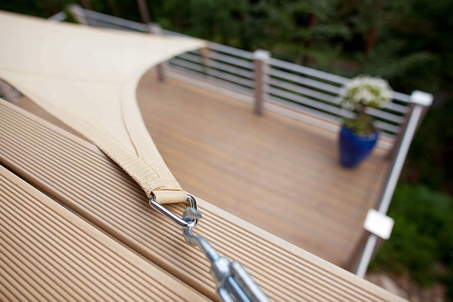 Детская игра, благодаря монтажным кольцам из нержавеющей стали и прочным кабелям, теневой парус можно легко прикрепить к деревьям, стенам, столбам, колоннам или перилам!