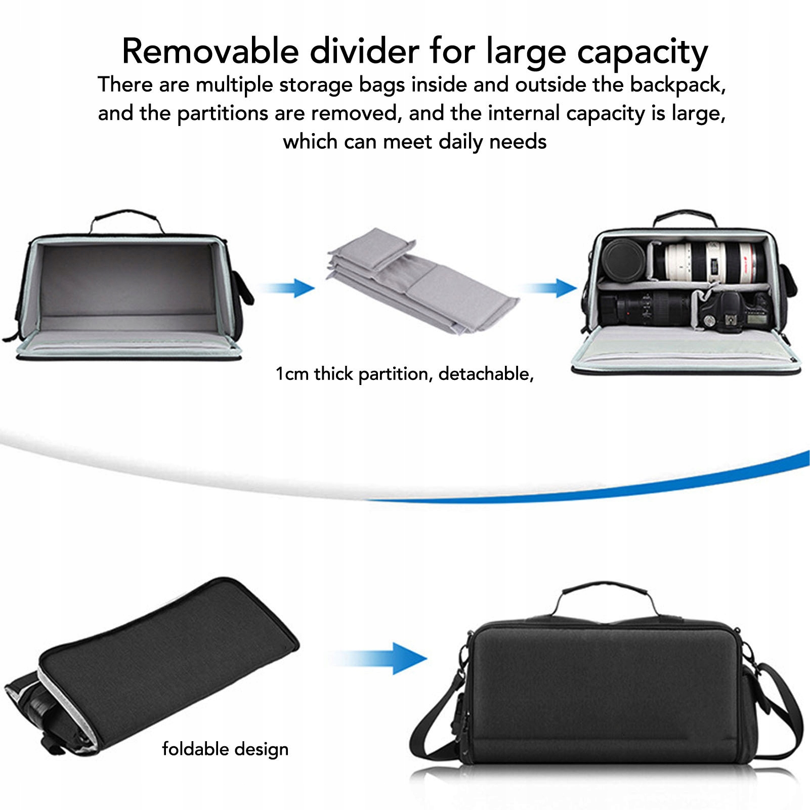 3. Складной: продукт легкий и складной, со съемными отделениями, позволяющими упаковывать вещи большой емкости, с несколькими карманами для хранения внутри и снаружи. Кроме того, в боковом кармане можно хранить аксессуары для камеры, такие как аккумуляторы для камеры и фонарики.