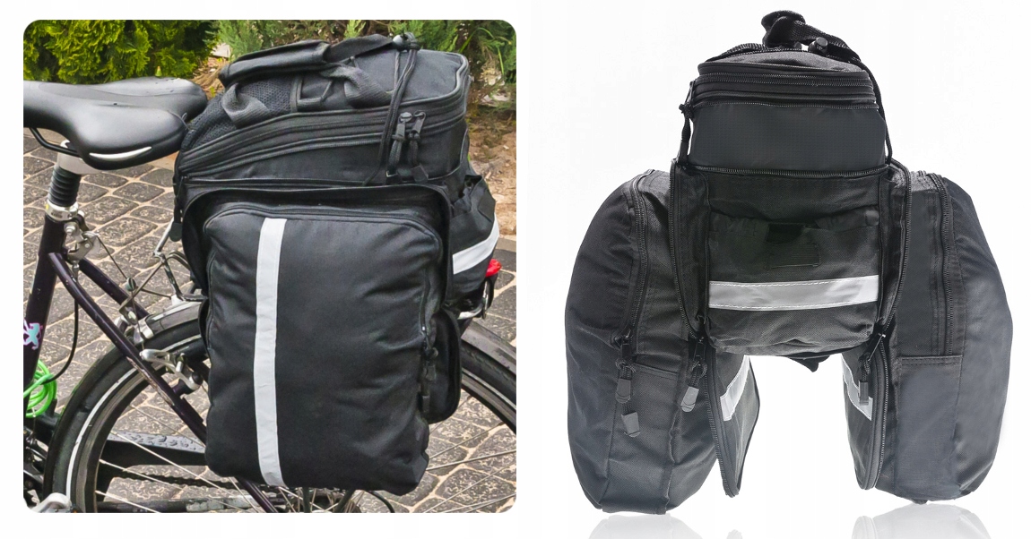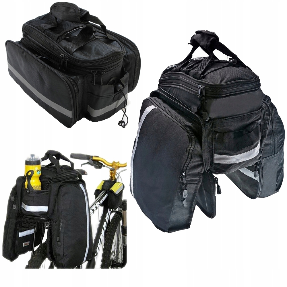 Предлагаемая сумка для велосипеда, закрепленная на багажнике, является идеальным решением как для повседневного использования, так и для длительных поездок на выходные. Благодаря тому, что он чрезвычайно вместительный, в нем можно разместить все необходимые во время велосипедной поездки вещи, такие как: сменную одежду и обувь, косметику, инструменты, продукты питания, мелкие предметы и т. д. Всего в нем 3 отделения (все увеличены) и 4 кармана (в зависимости от комплектации - описание ниже). Это дает большие возможности упаковки.