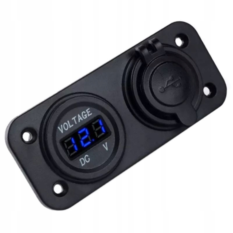 Монтажный автомобильный розетка с двумя портами USB 5V и построенным -ин вольтметр. Идеально подходит для использования в автомобилях, мотоциклах, мопедах, квадроциклы и скутеры, одним словом во всех транспортных средствах, где есть автомобиль 12 В легче. Включает использование двух встроенных в USB -портах с общим током 3,1А (2,1 + 1) и реализованным вольтметром с Дисплей, позволяя для тока измерения напряжения батареи