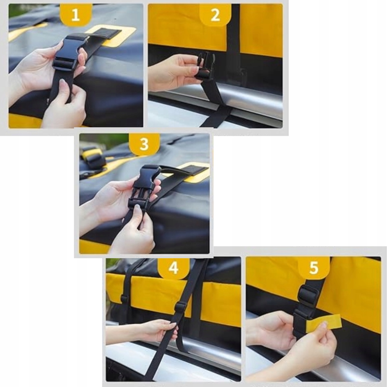 Сумка на крышу автомобиля разработана для легкой установки на автомобили с рейлингами. Просто расстегните ремни, протяните их через перила, застегните пряжки и затяните ремни для устойчивости.