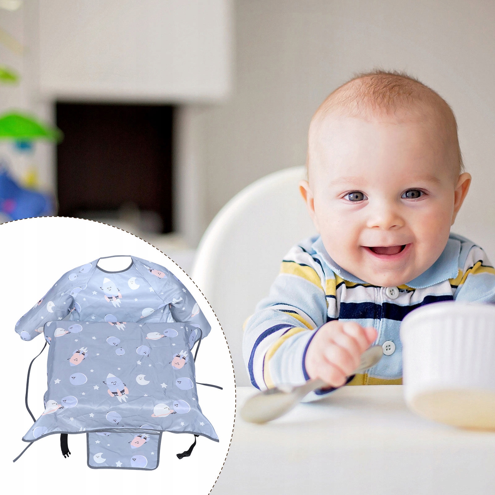 ВОДОНЕПРОНИЦАЕМЫЙ НАГЛУЖИТЕЛЬ С ДЛИННЫМ РУКАВОМ ДЕТСКИЙ ФАРТУК НАГЛУЖИТЕЛЬ ЕДИТ МЛАДЕНЦА B