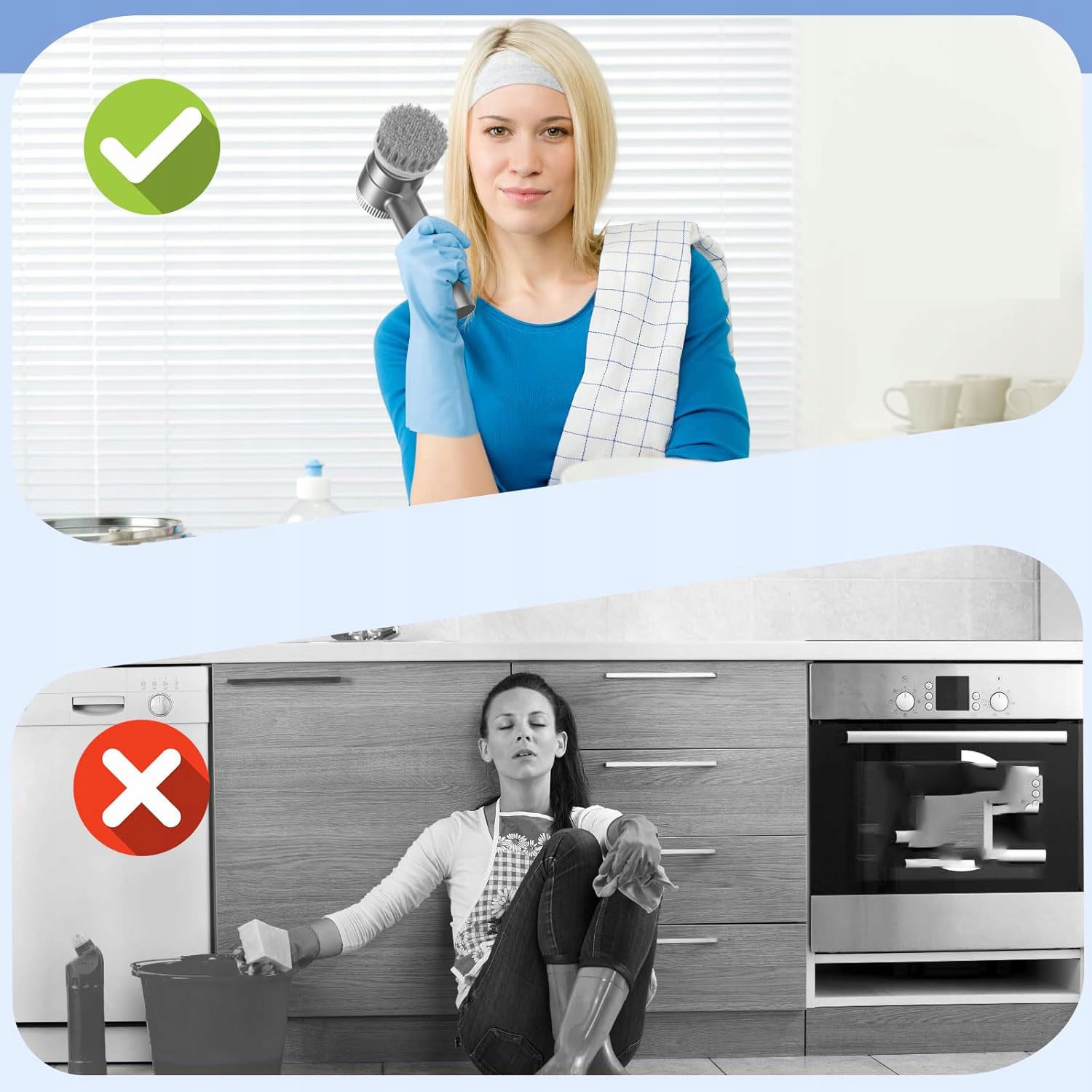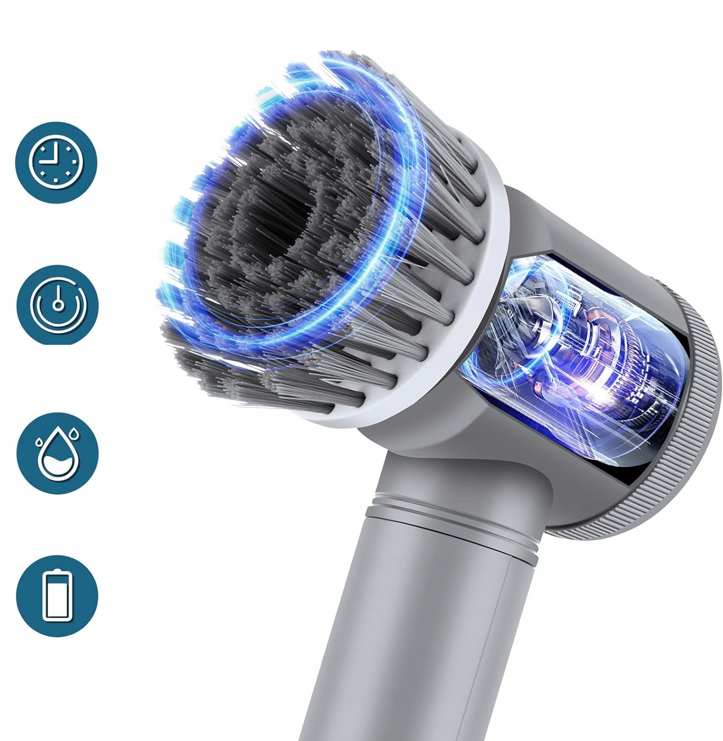 4 Заменяемые головки щетки: эта электрическая чистящая кисть Он хороший помощник в домашней уборке! Он оснащен 4 разными Типы заменяемых головок кистей, таких как плоская щетка, заостренная угловая щетка, проводная щетка, очистка щетка, губчатая кисть. Может удовлетворить потребности различных возможностей очистки