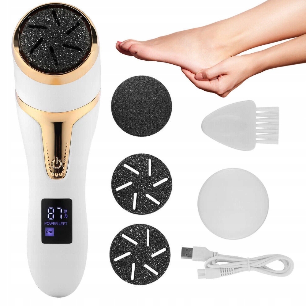 В комплект входят три круглые кварцевые насадки, которые обеспечивают комплексный уход за стопой и пятками. Каждая головка имеет разную крупность зерна, что позволяет подстраивать уход под индивидуальные потребности и состояние кожи.