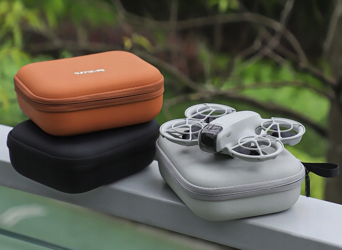 Чехол из высококачественной искусственной кожи и прочного материала EVA гарантирует защиту от механических повреждений, ударов и царапин. Он также устойчив к влаге и пыли, что делает его идеальным для хранения. дрон DJI Neo и его аксессуары.