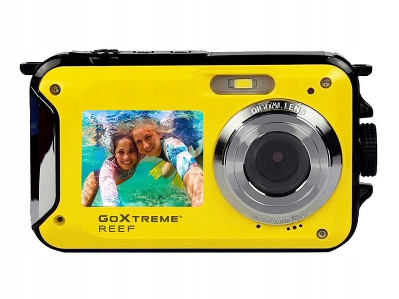 GoXtreme Reef — идеальная подводная камера для летних каникул. Умный дизайн, большой экран с диагональю 2,7 дюйма и второй дисплей с диагональю 1,8 дюйма на передней панели: благодаря функции двойного дисплея вы сможете создавать потрясающие селфи. Просто смотрите на общую картину и легко находите идеальные детали для своего портрета. Высококачественная 8-мегапиксельная матрица обеспечивает насыщенные цвета, а благодаря 4-кратному цифровому зуму и четкому разрешению изображения до 24 МП камера делает снимки подводного отпуска в четком и четком качестве. GoXtreme Reef водонепроницаем до трех метров, удерживается на месте с помощью прилагаемого ремешка и обеспечивает невероятно четкие фотографии даже в неспокойной воде благодаря функции защиты от тряски. Желтый цвет.