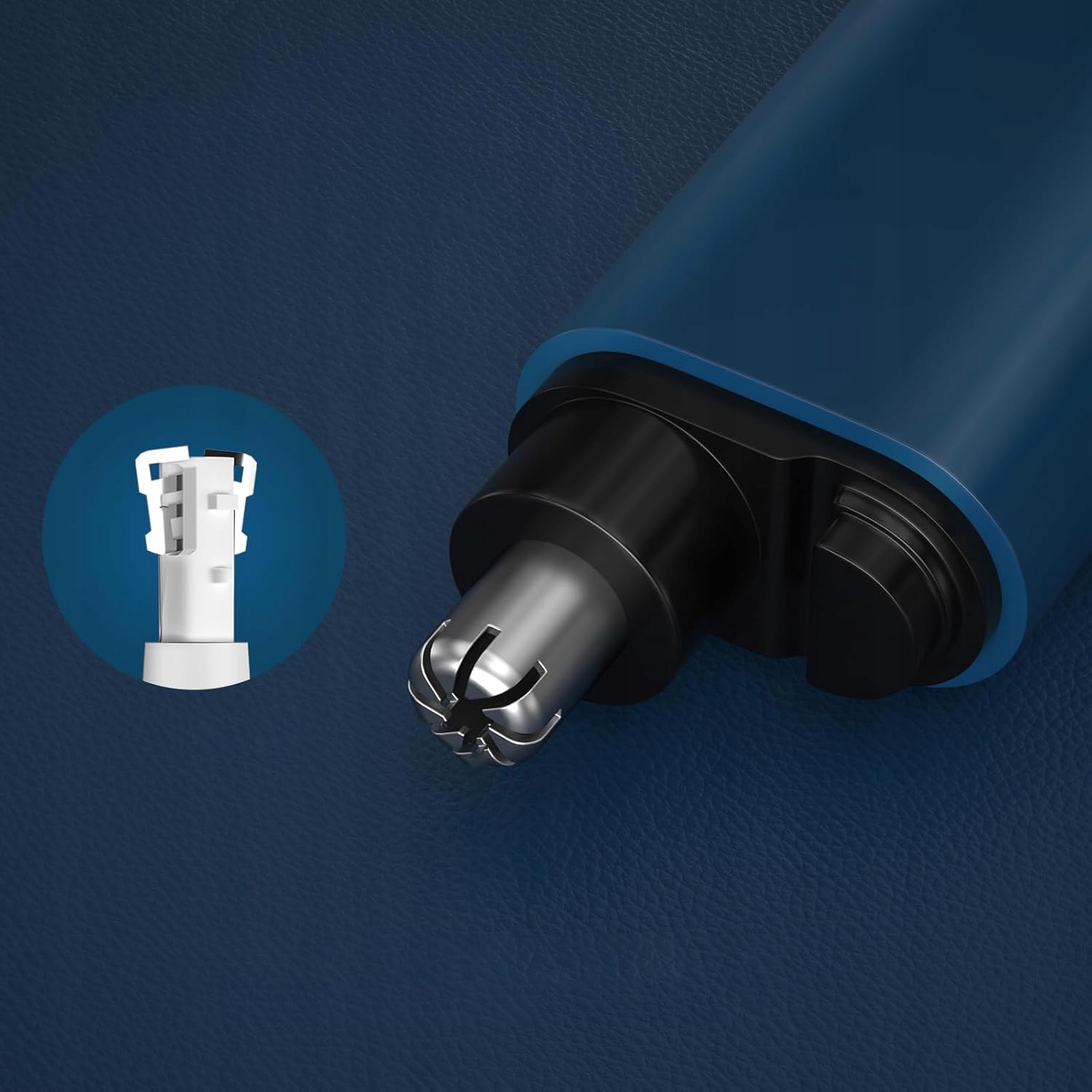 Триммер носа имеет структуру с двойной лезвием из нержавеющей стали, чтобы обеспечить эффективную и точную обрезку. Этот дизайн лезвий быстро удаляет нежелательные волосы из носа, обеспечивая при этом точный порез без ненужной боли и раздражения.
