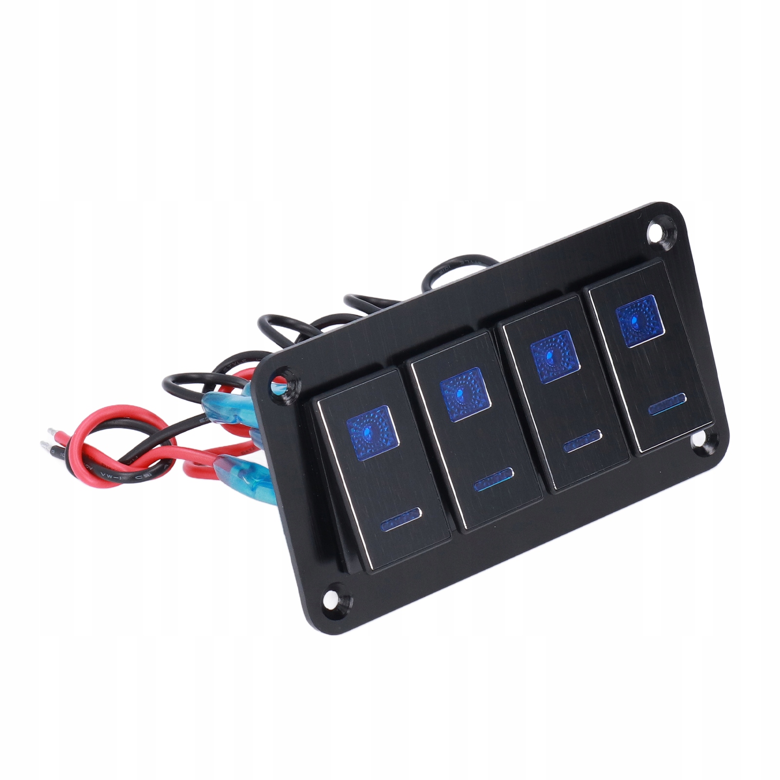 Черная 4-клавишная панель кулисного переключателя, водонепроницаемый переключатель IP65 со светодиодной подсветкой, модификация для моторной лодки, 12‑24 В постоянного тока
