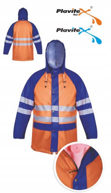 plavitex fluo - ткань на полиэфирном фундаменте, в одностороннем покрытии ПВХ. Это характеризуется повышенной видимостью и сопротивлением разрывам и гидроизоляционным швам. Химический состав покрытия гарантирует устойчивость к ткани к неблагоприятным погодным условиям и изгиб при температуре до -50 ° C. Материал соответствует требованиям EN 343 и EN ISO 20471, что было подтверждено в исследованиях, проведенных Аккредитованным Институтом исследований текстильных материалов. 5%)