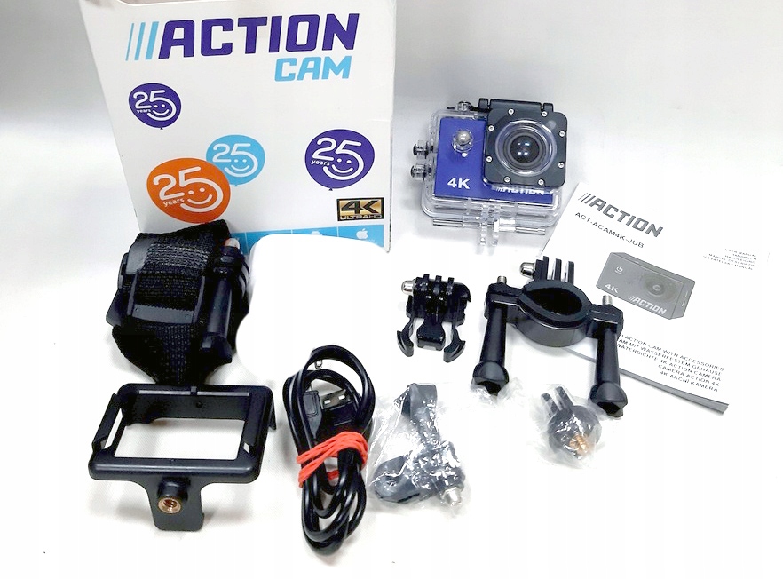 - Спортивная/экшн-камера 4K со встроенным микрофоном и водонепроницаемая. корпус,