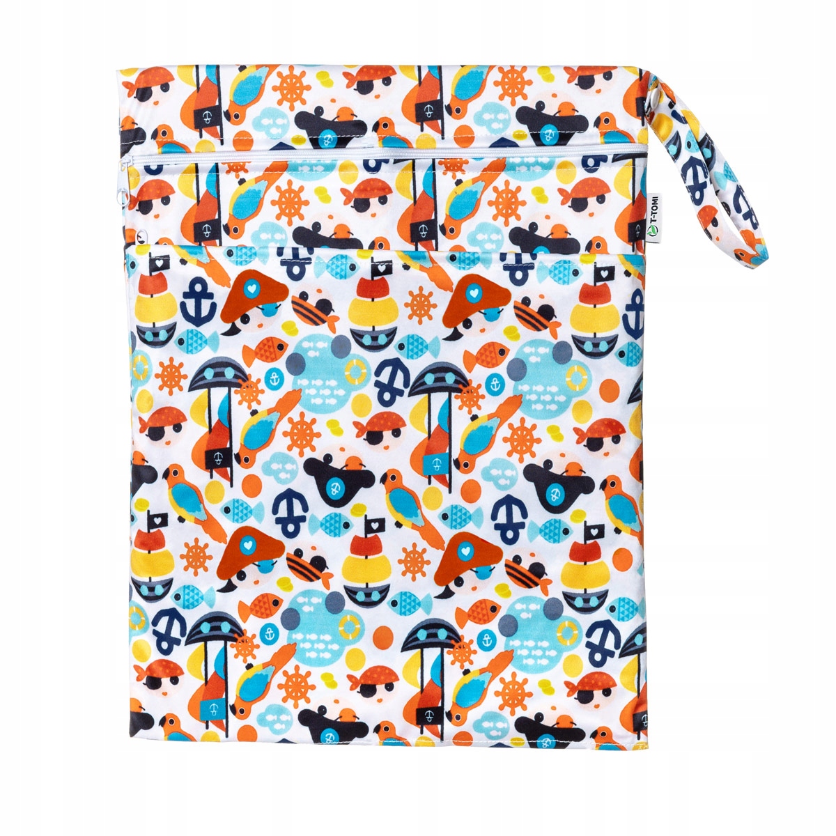 Водонепроницаемая сумка T-TOMI изготовлена из 100% полиэстера с PUL-покрытием. Благодаря двум большим карманам на молнии и практичной ручке на кнопке она станет незаменимым помощником не только дома, но и в путешествии. Подходит не только для мокрых подгузников, но и для купальных костюмов, полотенец, банных полотенец, сосок, зонтиков и других универсальных целей.