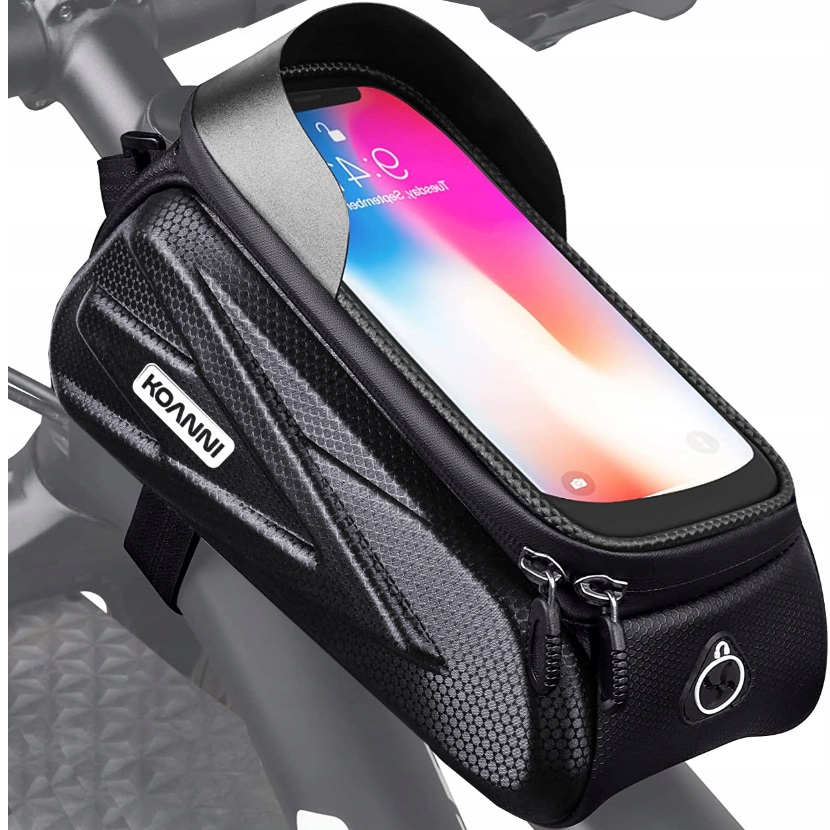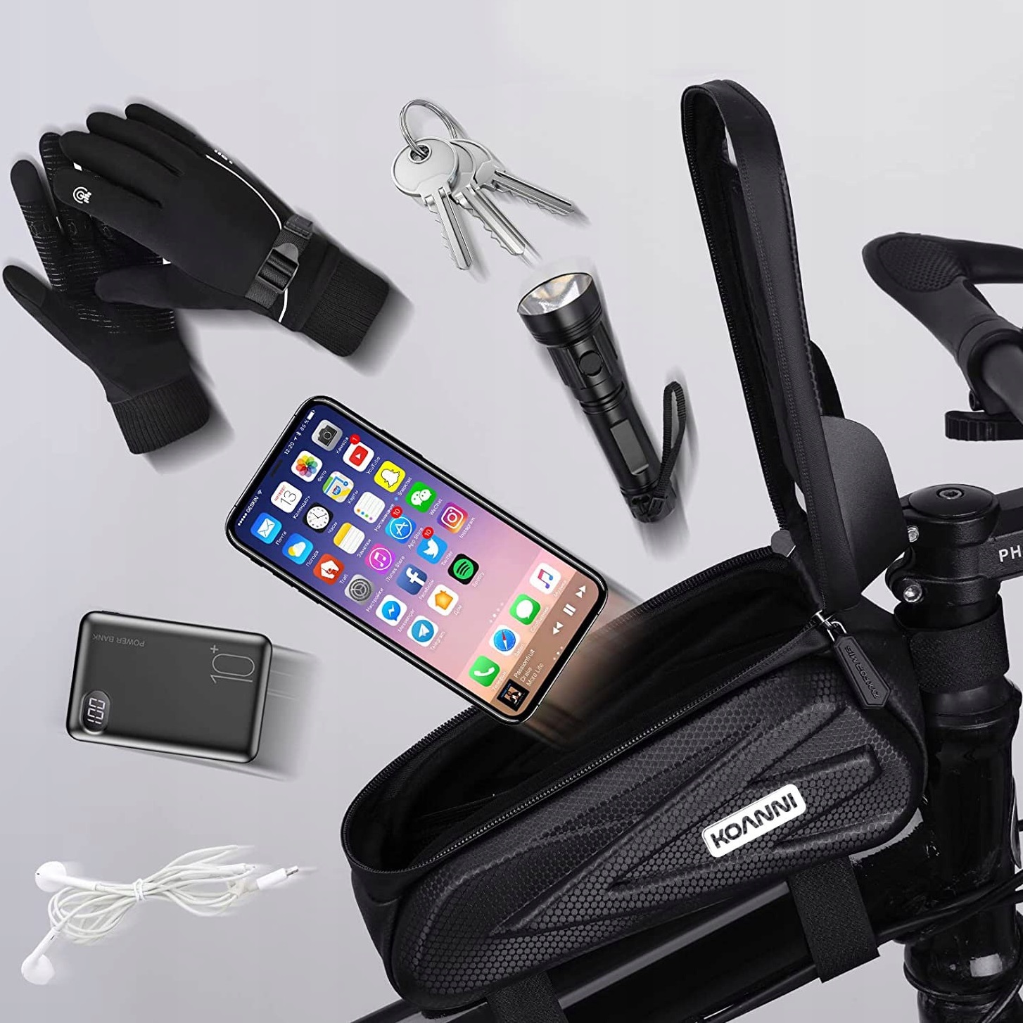 Место для мелочей, доступ к телефону, защита от дождя и грязи – это сумка на раму велосипеда с держателем для телефона. Вы можете устойчиво закрепить его на велосипеде, а в верхней части положить телефон за пленку. Вы будете иметь плавный просмотр экрана даже во время вождения. Специальный солнцезащитный козырек защитит ваше зрение от отражения солнечных лучей. Что немаловажно, сумка очень вместительная. В него поместится множество полезных вещей, например, очки, мультитул или кошелек.