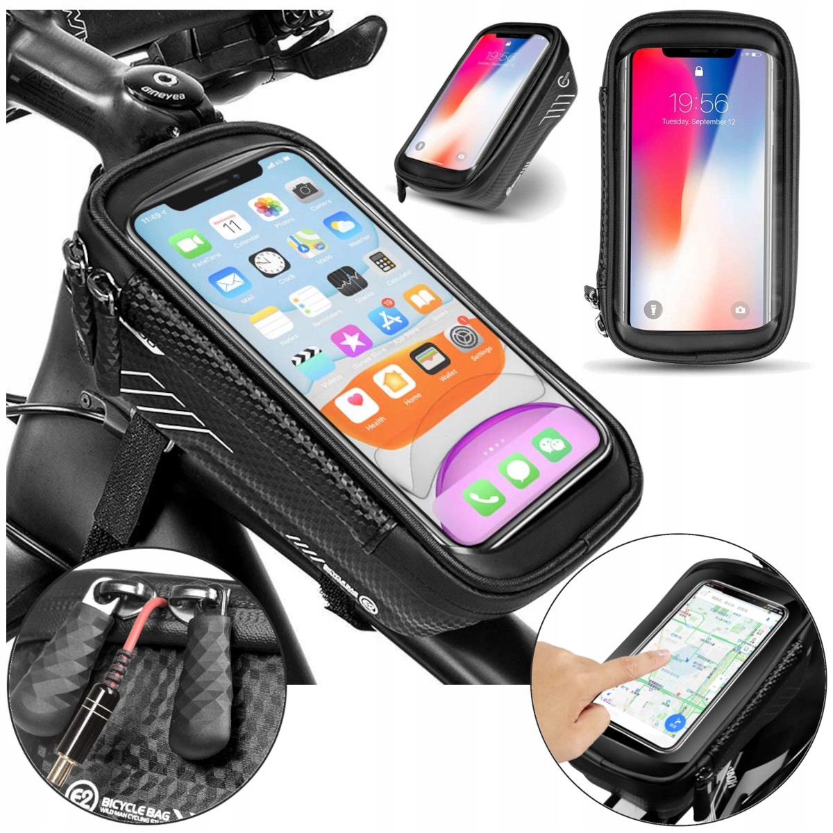 водонепроникна ВЕЛОСИПЕДНА СУМКА НА РАМУ, ТРИМАЧ ДЛЯ ТЕЛЕФОНУ, ВЕЛОСИПЕДНА СУМКА НА ЛИПУЧЦІ