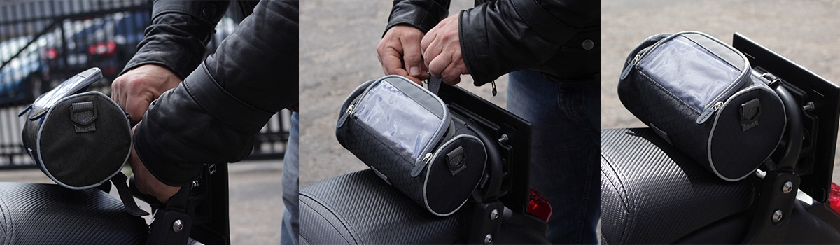 ✅ Верхняя часть сумки имеет место для телефона или навигации с прозрачным окном из ПВХ -пластика.