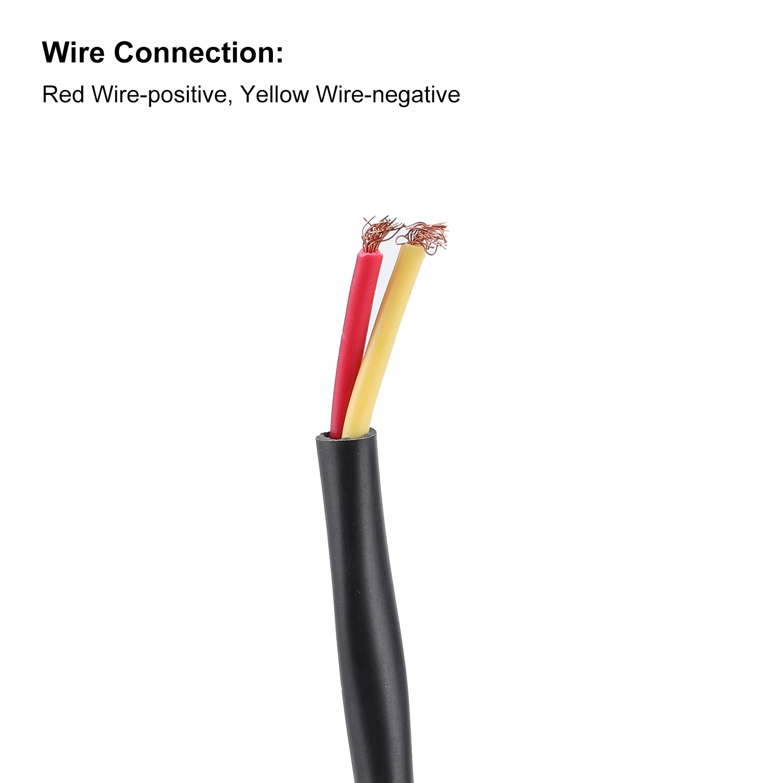 Подключение проводов: красный провод – положительный, желтый – отрицательный.