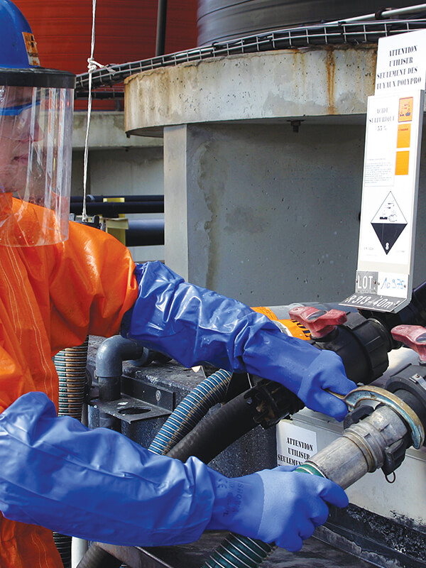 Перчатки водонепроницаемые Pros модель 043 с приваренным рукавом из водонепроницаемого, жиростойкие, ферменты и пищеварительные соки тканей Плавитекс. Предназначен для использования во всех рыбных, пищевых и плодоовощных отраслях промышленности. Перчатки сварены с двух сторон током высокой частоты. Они характеризуются высокой устойчивостью к изгибу при отрицательных температурах (даже до -50°С). Вес 350 г/м2, толщина: 0,48 мм. Они обеспечивают эффективную защиту рук. Они дополняют передний фартук. Продукт соответствует нормам европейских стандартов: EN ISO 13688 и EN 343.