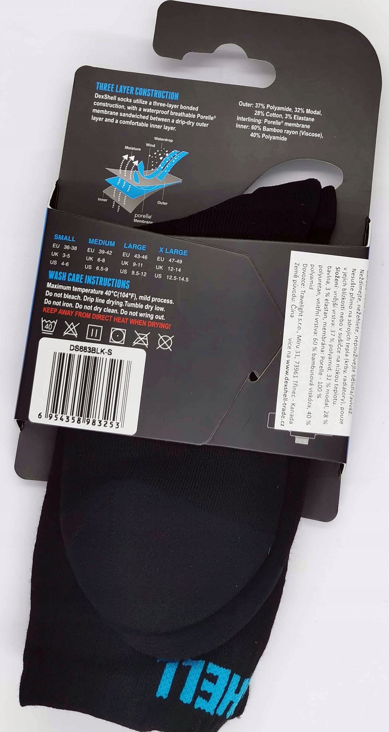 ВНИМАНИЕ - несколько слов пояснений по поводу водонепроницаемости носков DEXSHELL. Носки имеют мембрану, которая действует как барьер для воды, но помните, что вся система стопа-носок-икра не является водонепроницаемой, поскольку место, где носок соприкасается с кожей, не является водонепроницаемым и вода, стекающая по ноге, может попасть внутрь. Если вы наденете носок и встанете в воду по щиколотку, ваши ноги останутся сухими. Однако если вы погрузите ногу выше носка, она может попасть внутрь.