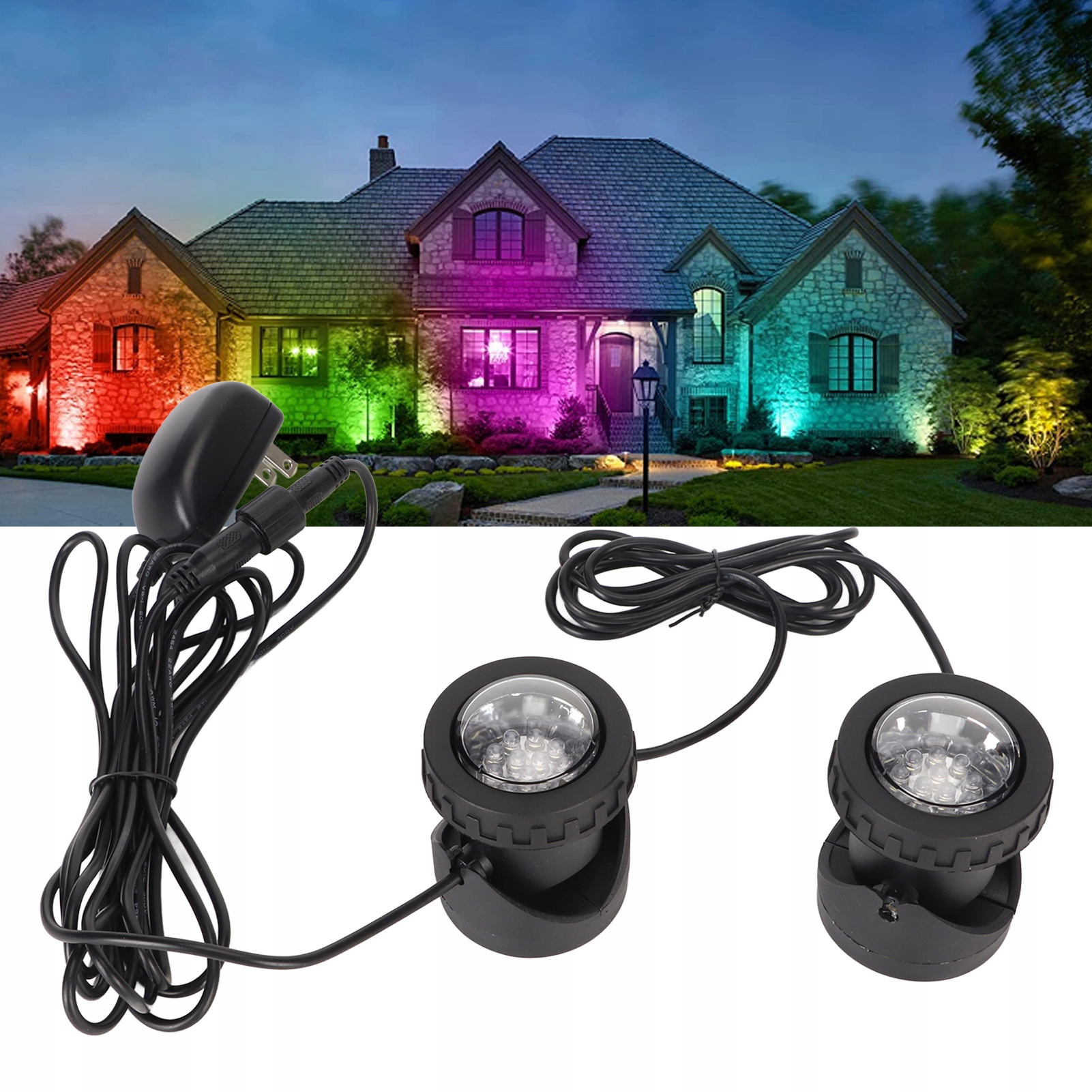 Освещение пруда Изменение цвета водонепроницаемых светодиодных фар IP68 с красочными аквариумными линзами Американский плагин 100-240 В h1>