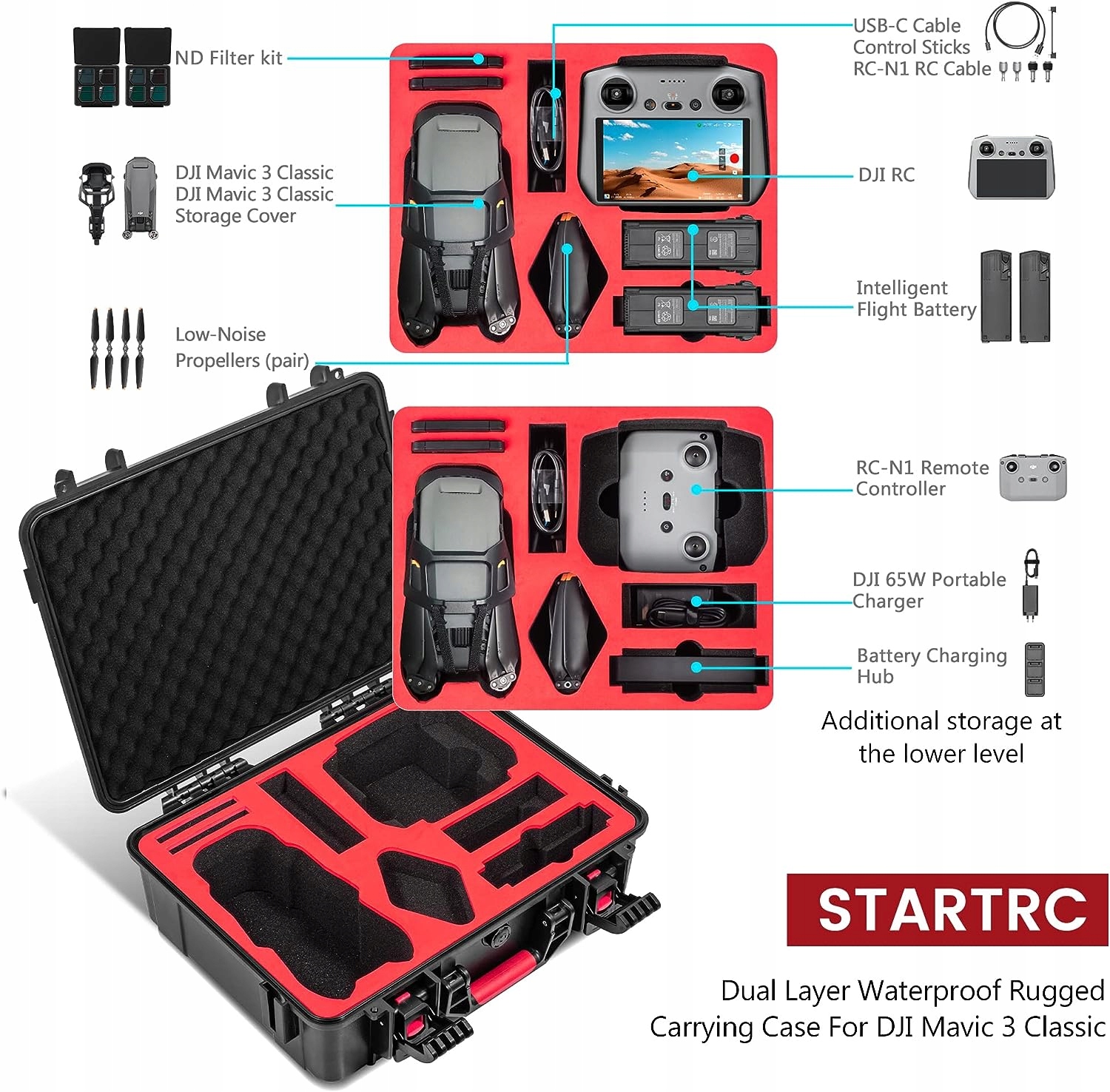 Чехол STARTRC позволит вам удобно и безопасно транспортировать дрон DJI Mavic 3 и аксессуары. Его отличает прочная водонепроницаемая конструкция, которая защищает размещенные внутри устройства от повреждений. Он также оснащен специальными отделениями, которые помогут вам организовать пространство и поддерживать его в порядке. Чемодан очень вместительный — в него легко поместится не только дрон, но и, например, аккумуляторы, аппаратура управления, фильтры, пропеллеры, адаптер питания и зарядный хаб.