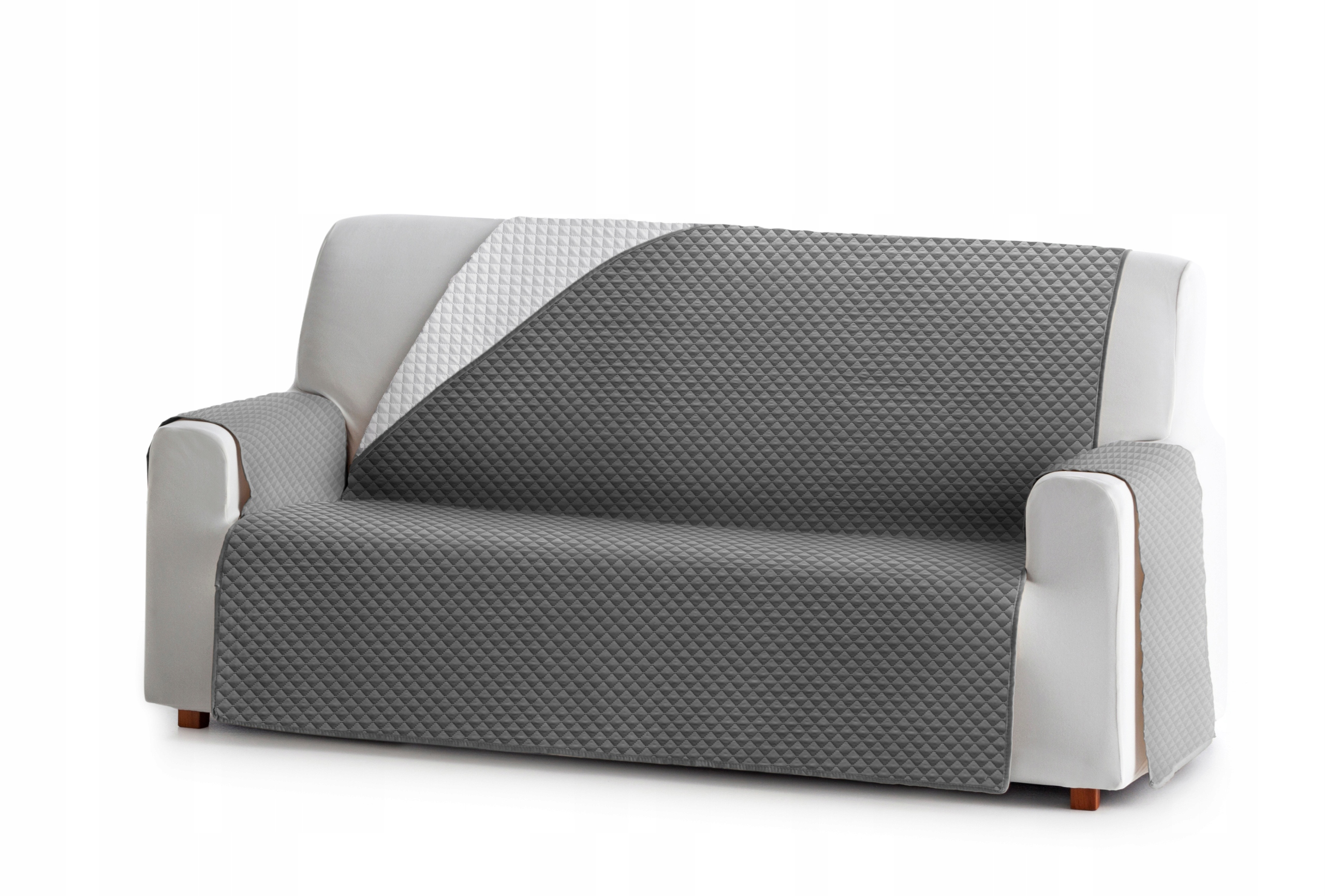 Вы делаете ставку на водонепроницаемый чехол для дивана шириной спинки до 170 см (темно-серый цвет). Чехол выполнен из очень приятной на ощупь ткани с стежкой. Он не устойчив к механическим повреждениям (порезы, дыры), при повреждении нижней мембраны может протекать. Если мембрана порвется или порежется, она потеряет свои водонепроницаемые свойства.