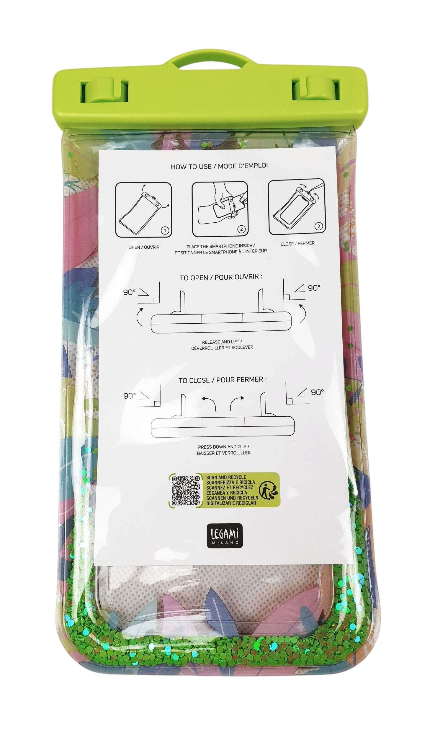 • Кто является душой вечеринки у бассейна? Конечно же, благодаря плавающему водонепроницаемому чехлу для смартфона Pura Vida от Legami! Благодаря практичному ремешку вы можете носить смартфон на шее и наслаждаться подводными селфи и телефонными звонками в ванне. Защищает ваш смартфон от повреждений, вызванных водой, кремами, песком, хлором и солью, а также снегом и пылью.