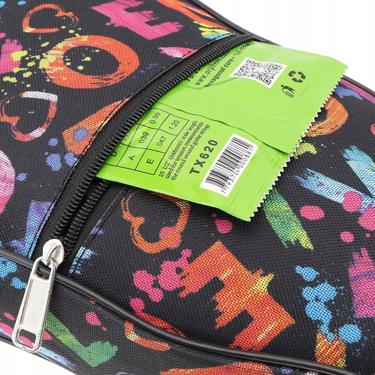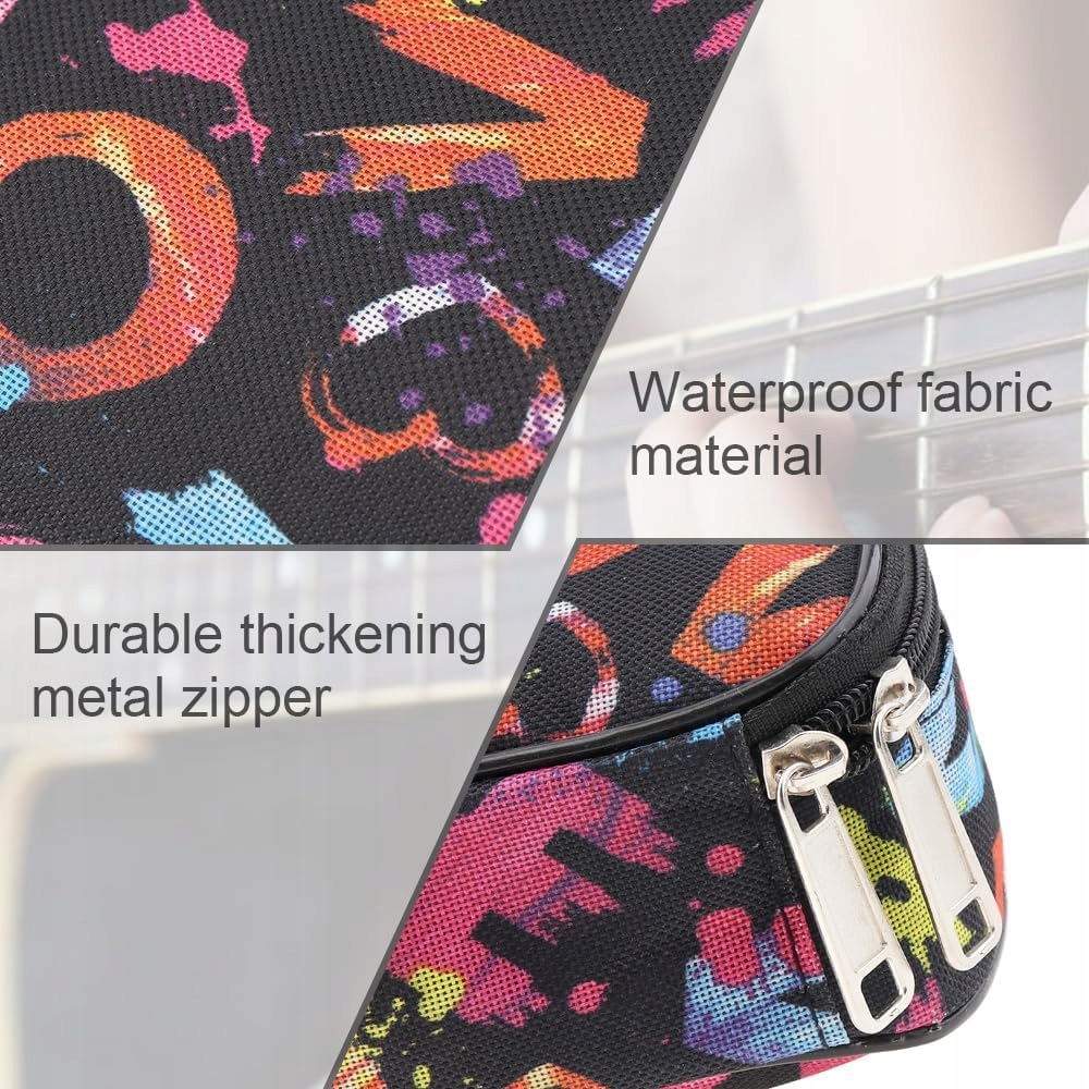 Водонепроницаемый чехол и рюкзак MuzcYM для UKULELE 23", разноцветные сердечки и надпись LOVE на черном фоне