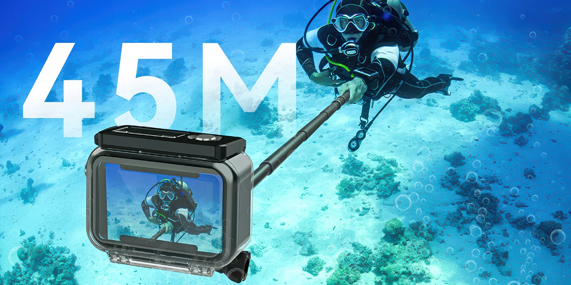 Telesin OA-WTP-003 — профессиональный бокс, предназначенный для подводных экспедиций с камерой DJI Osmo Action 3/4/5 Pro. Герметичная конструкция и сильное давление уплотнения обеспечивают безопасное погружение на глубину до 45 м. Устойчивость к давлению волн не ограничивает свободу передвижения во время серфинга или дайвинга. Трехступенчатая система крепления (открыть, вставить камеру, защелкнуть) позволяет вам погрузиться под воду всего за несколько секунд.