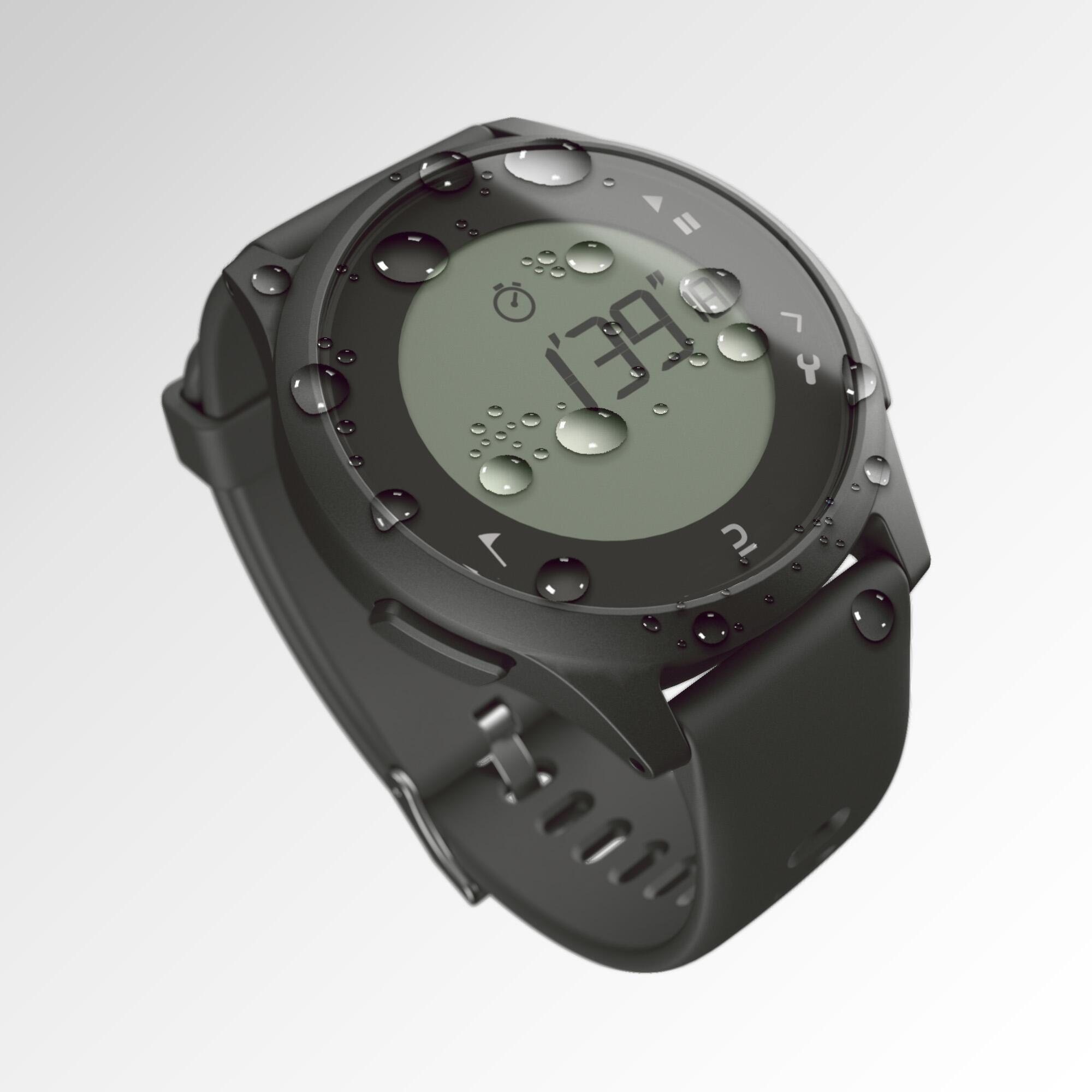 - Водонепроницаемость: 50 м. Возможность плавать и пользоваться кнопками под водой. Часы устойчивы к воде бассейна (хлор), морской воде (соли) и поту.