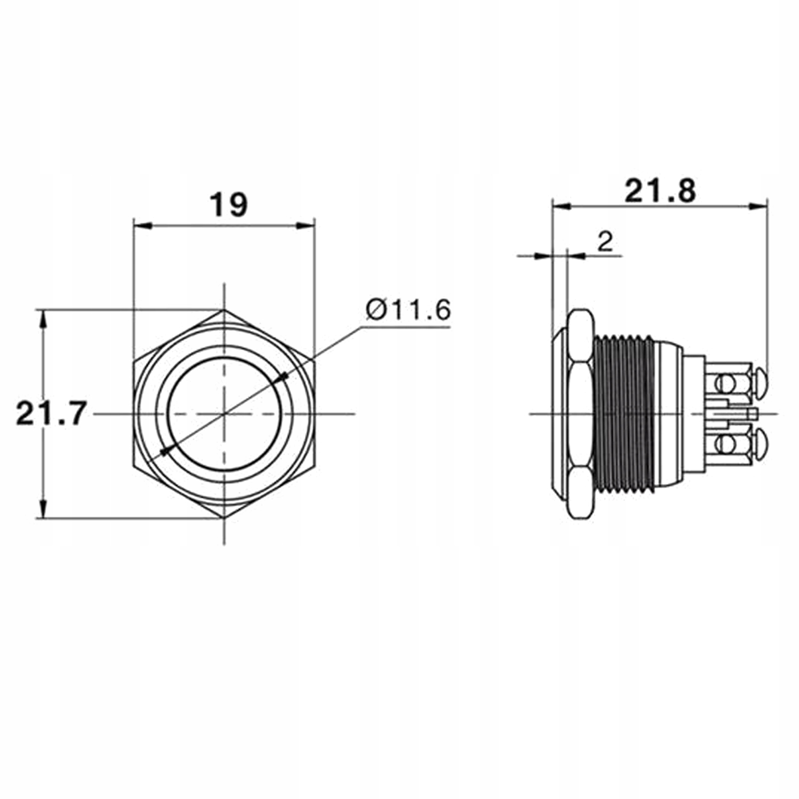 3. Этот встроенный кнопочный переключатель диаметром 16 мм имеет два зажима для проводов для удобства установки