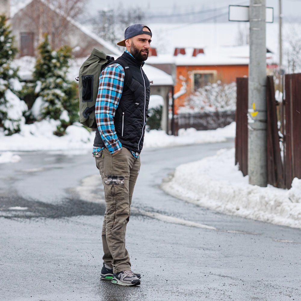 - Водонепроницаемый рулонный верх с пластиковой пряжкой.