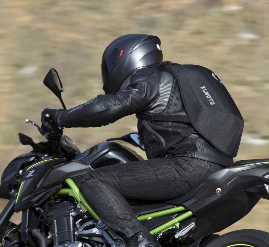 Устали от того, что ваш рюкзак развевается на ветру? Вам нужен рюкзак-ракушка, предназначенный для мотоциклистов. Рюкзак не только стильный, но еще аэродинамичный и водонепроницаемый. Вмещается ноутбук (15 дюймов), дополнительная одежда и т. д. Аэродинамическая форма в сочетании с жестким корпусом делает его подходящим для скоростной езды.