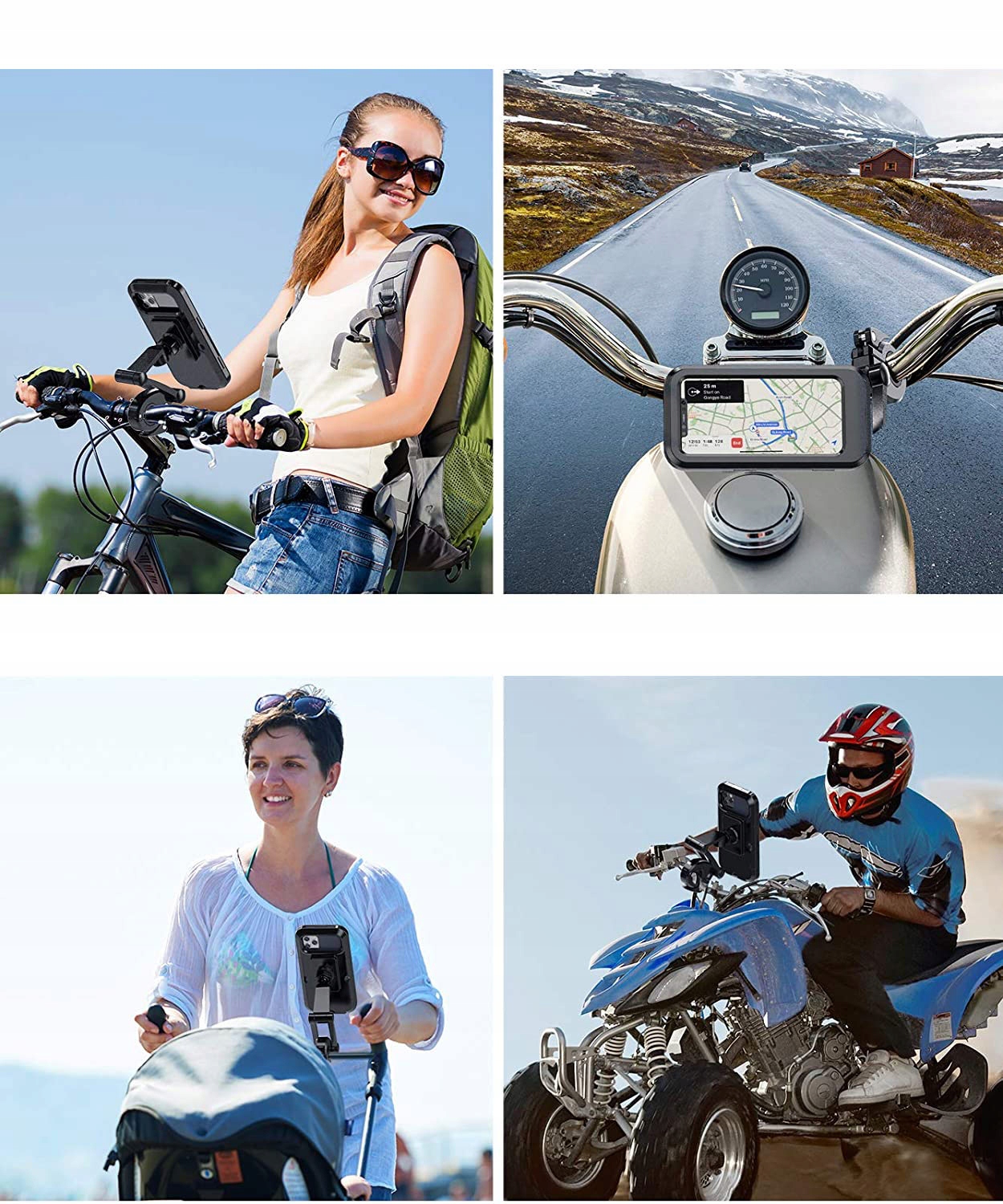 Водонепроницаемый держатель для телефона имеет закрытую конструкцию, что делает его более безопасным, чем большинство держателей для велосипедных телефонов, доступных на рынке. Обеспечивает водонепроницаемость IPX6, чтобы полностью защитить ваш телефон от дождя, снега, грязи и брызг пыли. Уникальная система регулировки винтового крепления и ударопрочный чехол защищают ваш телефон от падений.