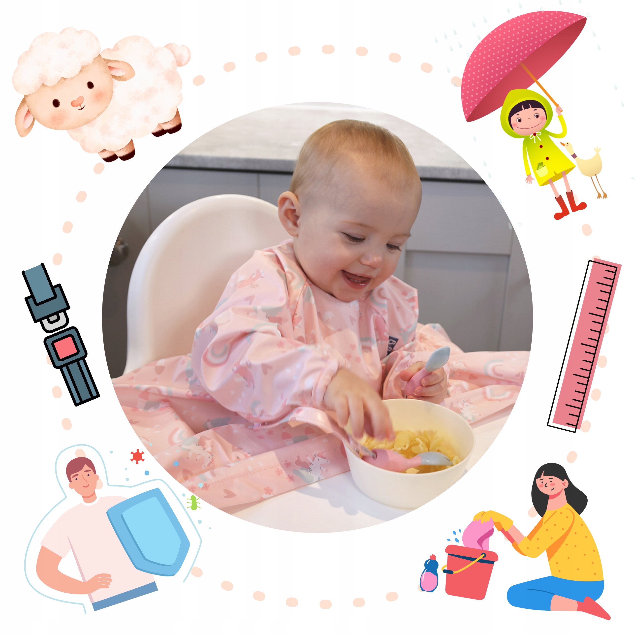 - Регулируемые ремни для детского стульчика или коляски — сохраняйте одежду чистой и сухой во время еды