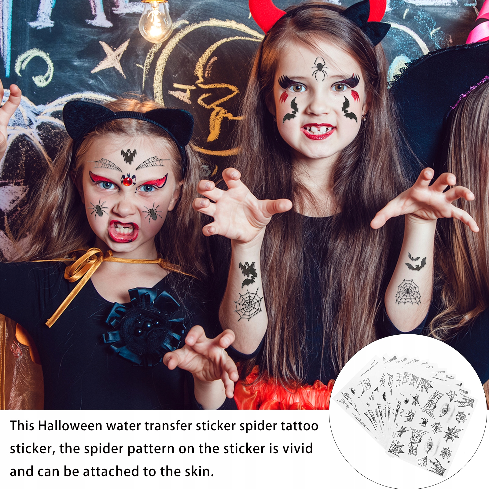 Хотите стать более уникальным и модным? Эти наклейки-тату на Хэллоуин — идеальный выбор! Вы можете наклеить их на лицо, шею, руки, ступни, ноги, практически на любое место тела. Это идеальные наклейки, которые сделают вас красивее и моднее на вечеринке в честь Хэллоуина.