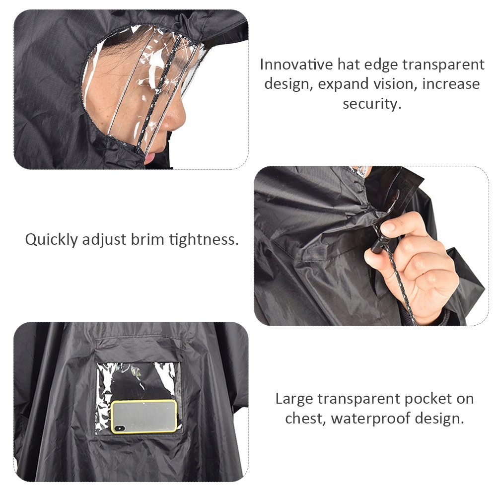 дождевиком и рядом кнопок с обеих сторон для крепления к рукавам. 4. Инновационный прозрачный дизайн края шляпы расширяет обзор, повышает безопасность. 5. Отдельное натяжение струн, без намотки, безопасно и быстро.