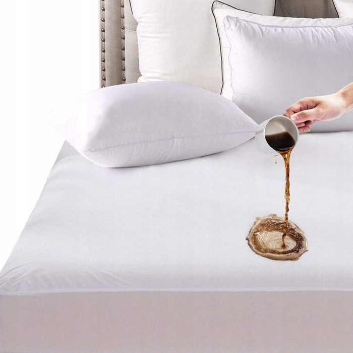 Махровый наматрасник с полиуретановой мембраной, защищающей от просачивания жидкости.