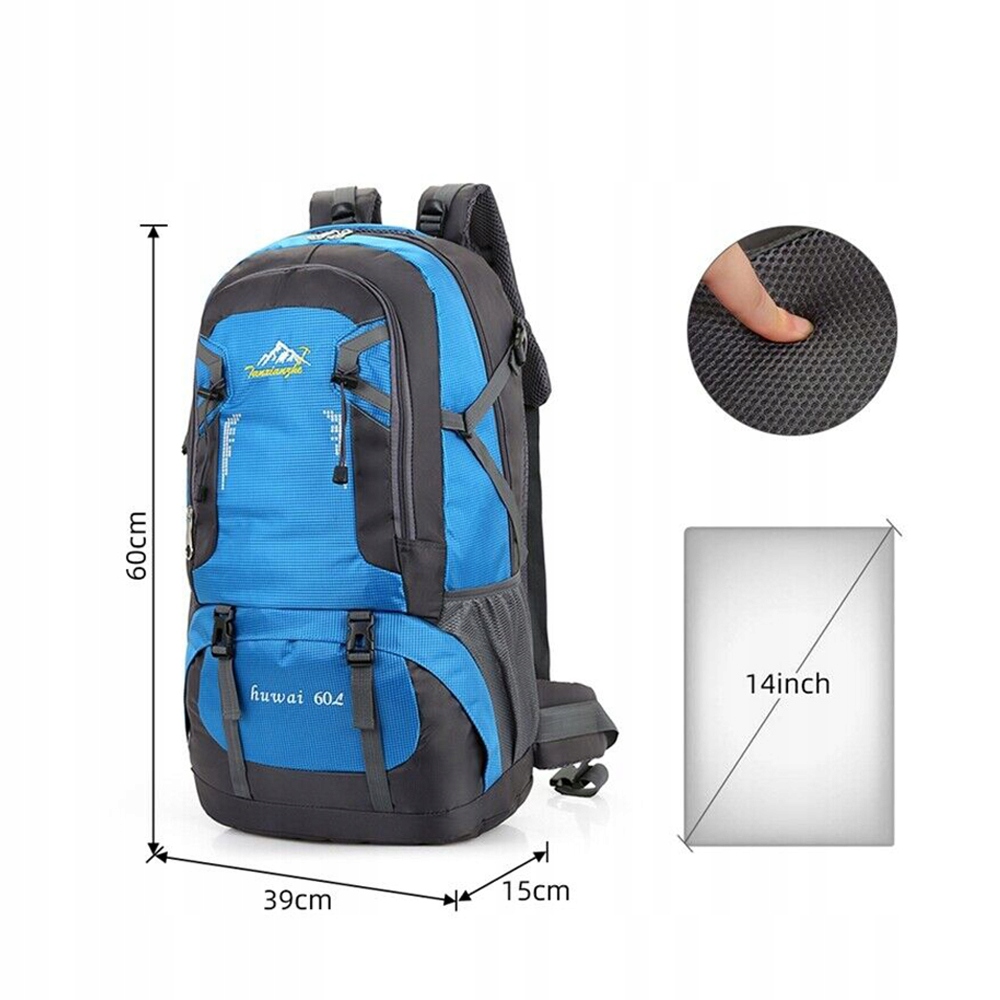 - Рюкзака на 60 литров достаточно для удовлетворения ваших различных потребностей. Вы можете легко хранить одежду, предметы для выживания, аварийные инструменты, веревки и другие вещи, которые облегчат вашу жизнь на свежем воздухе.