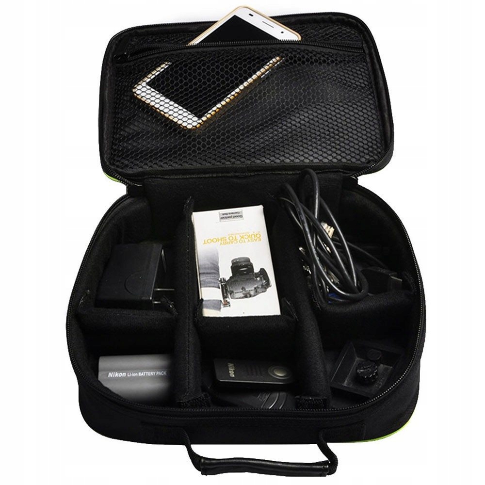 - Достаточно места для хранения аксессуаров, таких как фильтры, батарея, батарея, зарядное устройство, карты памяти, кабели и т. Д.